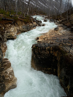 The weather started to clear. We hiked along a waterfall, Ochre beds, and Marble Canyon (which was not make of marble at all, but rather dolomite). The weather began to improve, and at a few points even the sun started to come out.